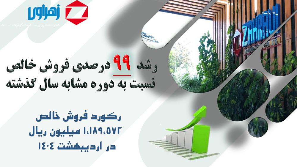 داروسازی زهراوی در شهریور ۱۴۰۴ با رشد ۵۵ درصدی فروش نسبت به سال گذشته، به فروش ۱۴۴ میلیارد تومان دست یافت.